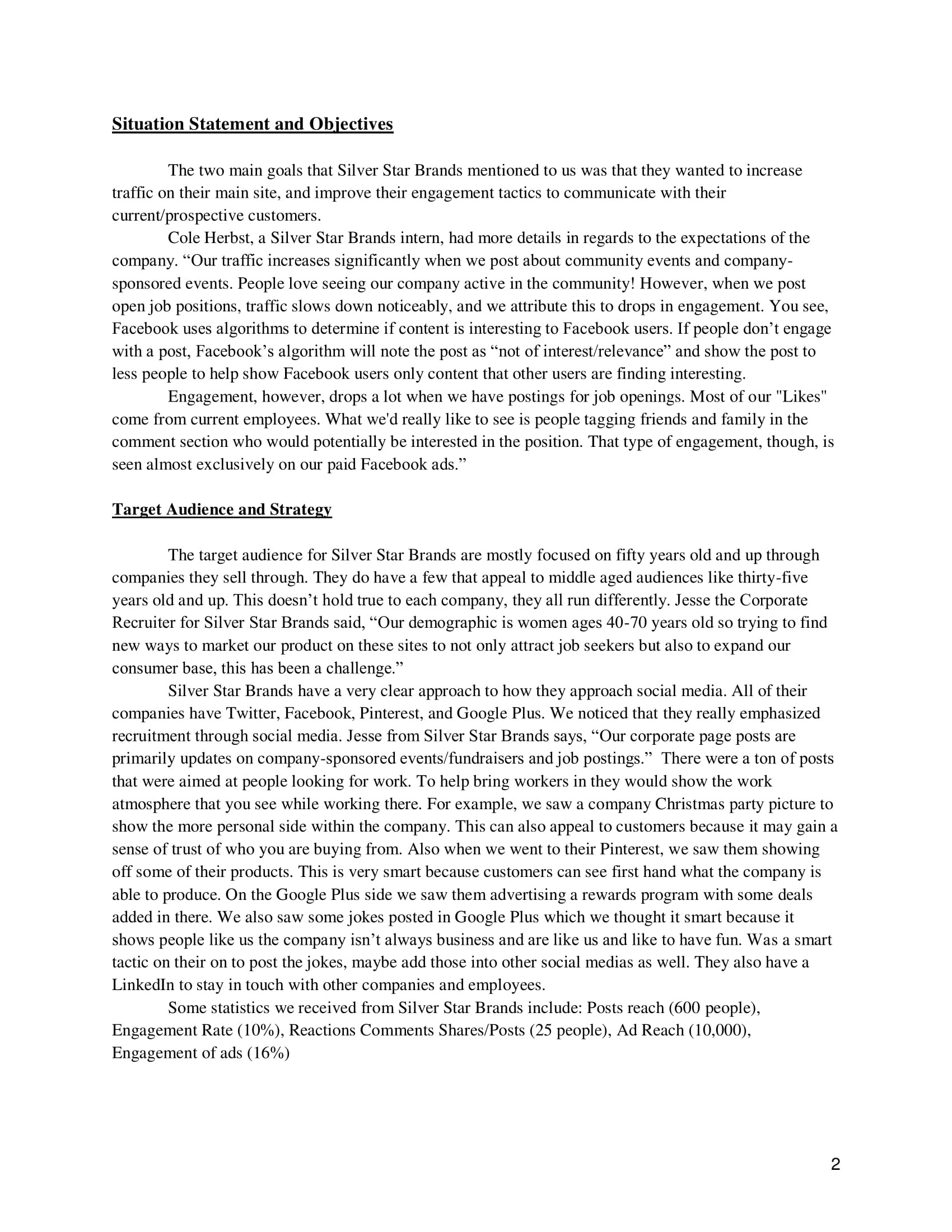 Social Media Marketing Plan: Silver Star Brands